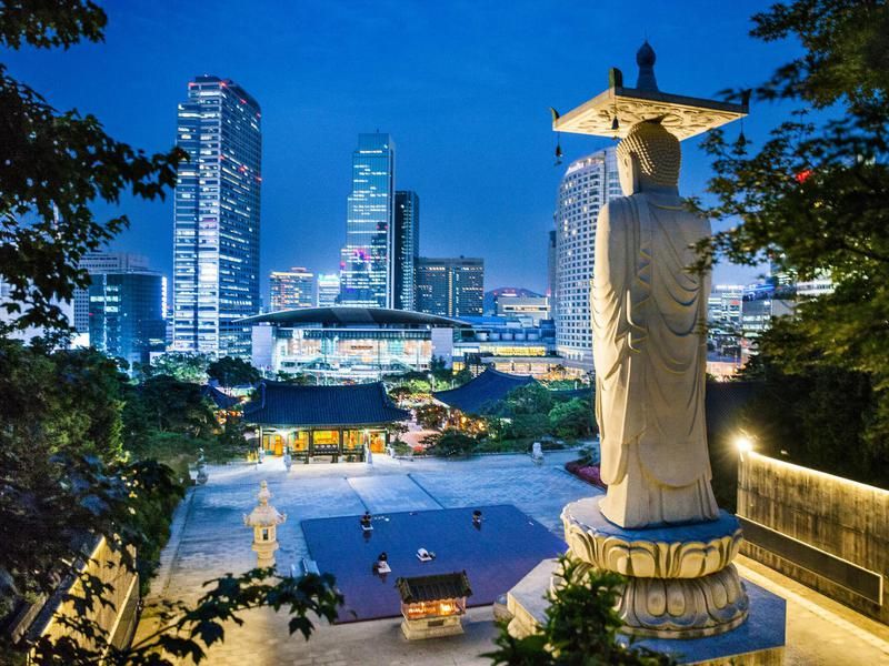 Храм Бонгеунса. | Фото: ginomempin / Flickr.Этот восхитительный буддистский храм основан в 794 г. на склонах горы Судо. В этом месте все еще сохраняется более-менее спокойная атмосфера, несмотря на небоскребы, которые сейчас возвышаются над ним. Бонгеунса – популярный туристический объект – самый роскошный и большой храм в столице.