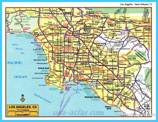 Центральный район Лос-Анджелеса, районы, пляжи и места для развлечений — Лонг-Бич, Куин-Мэри, Лейквуд , Комптон, Инглвуд-Форум, Уоттс, Эль-Сегундо, Санта-Моника-Бич, Венеция, Сенчури-Сити, Мид-Уилшир, Вестсайд, Пасадена и окрестности, Бербанк, автострады, Юнион-Стейшн, Юниверсал-Сити — Лос-Анджелес бесплатная карта достопримечательностей города
