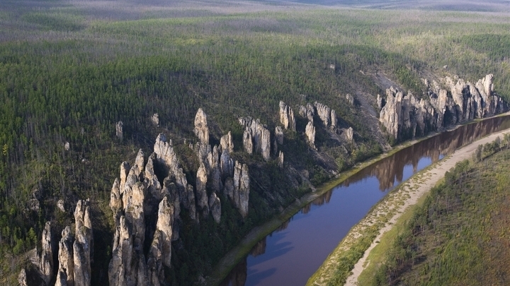 Ленскими столбами называют череду величественных отвесных скал разной формы, возвышающихся вдоль побережья реки Лены на протяжении более 40 км. Их возраст составляет 400 тысяч лет, образованы они в основном известняковыми породами. Живописные природные столбы, а также прилегающие к ним территории, образуют одноименный национальный заповедник. Помимо горных образований, он знаменит большим разнообразием флоры и фауны, многие представители которых числятся в Красной книге.
