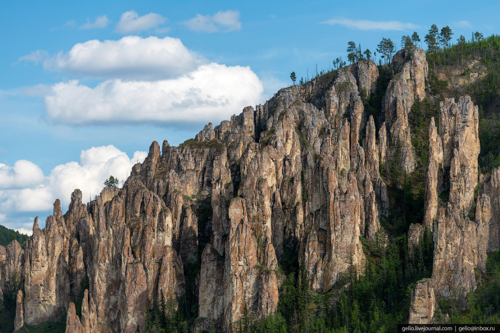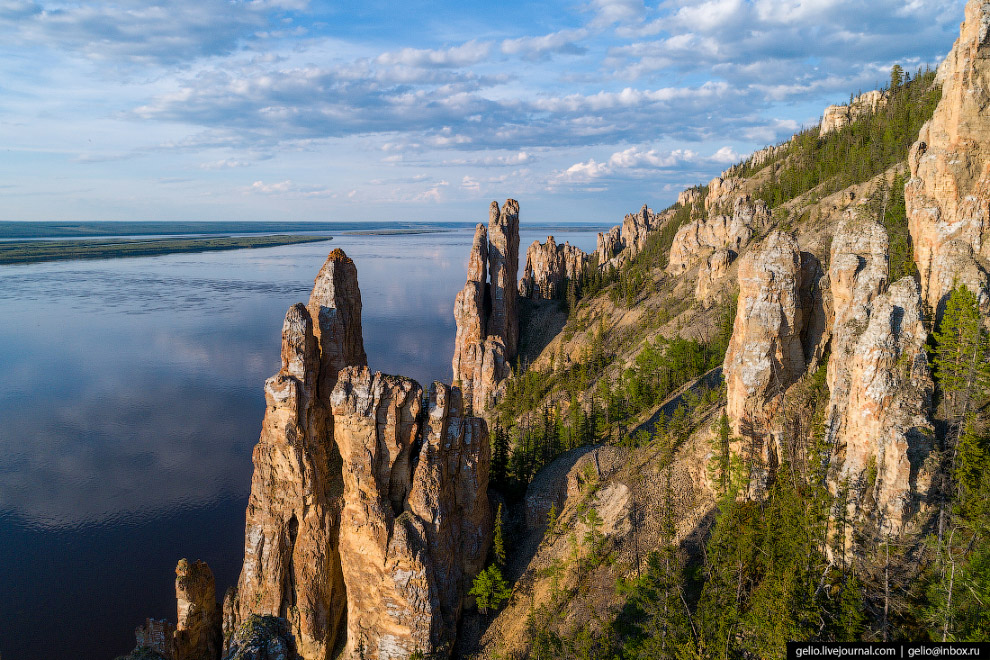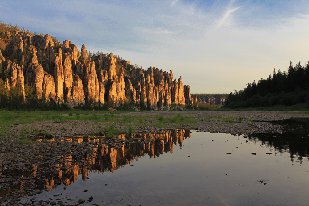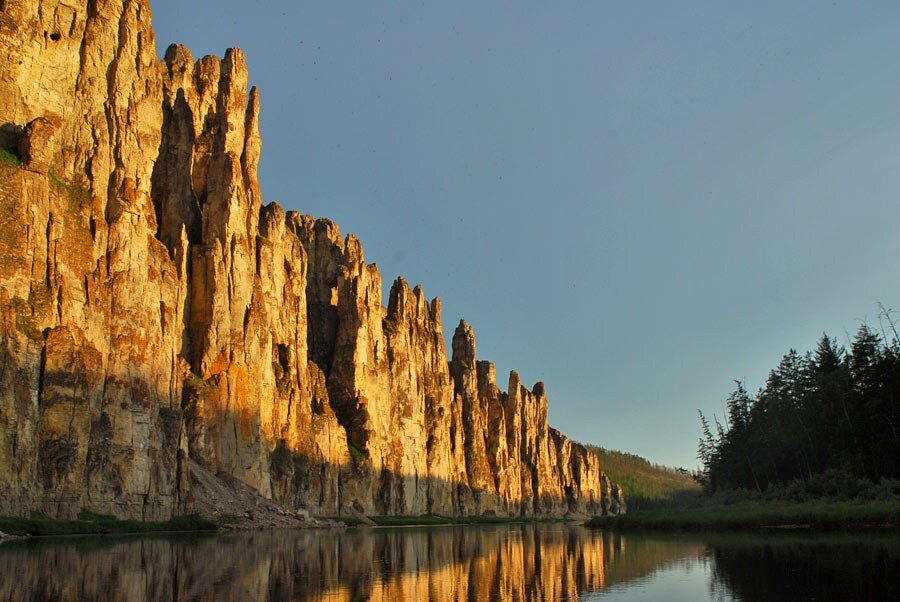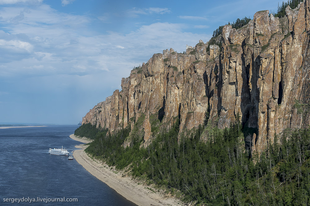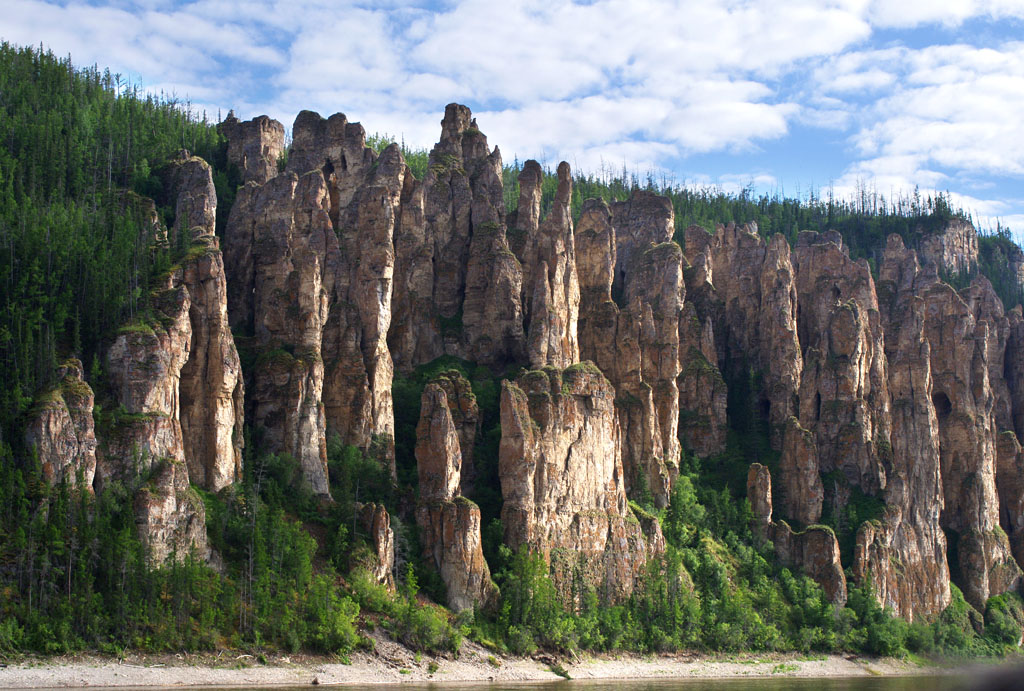 Огромные многокилометровые скалы на берегу реки Лена – символ и главная туристическая «изюминка» республики, одна из самых впечатляющих достопримечательностей страны. Скалы сложены кембрийскими известняками, их образование началось около 400000 лет назад.