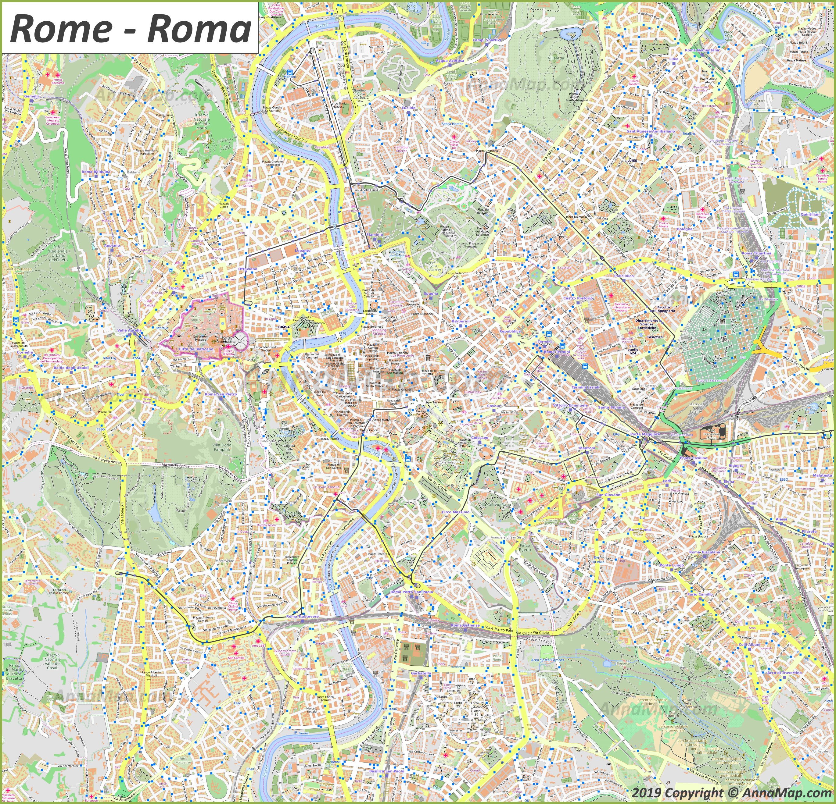 Удобно и то, что карта масштабируется с любым уровнем детализации. Так, можно приблизить карту и увидеть самые мельчайшие детали. А режим просмотра улиц позволит увидеть, как именно это место выглядит в реальности. Но следует помнить, что фотографии могут быть несколько устаревшими, а некоторые мелкие улицы не будут доступны в режиме просмотра.Достопримечательности Рима на карте