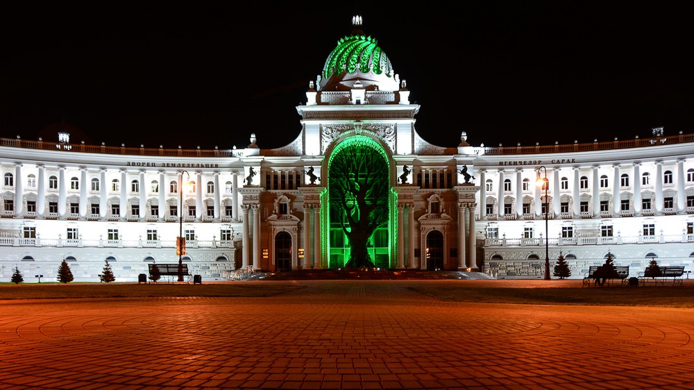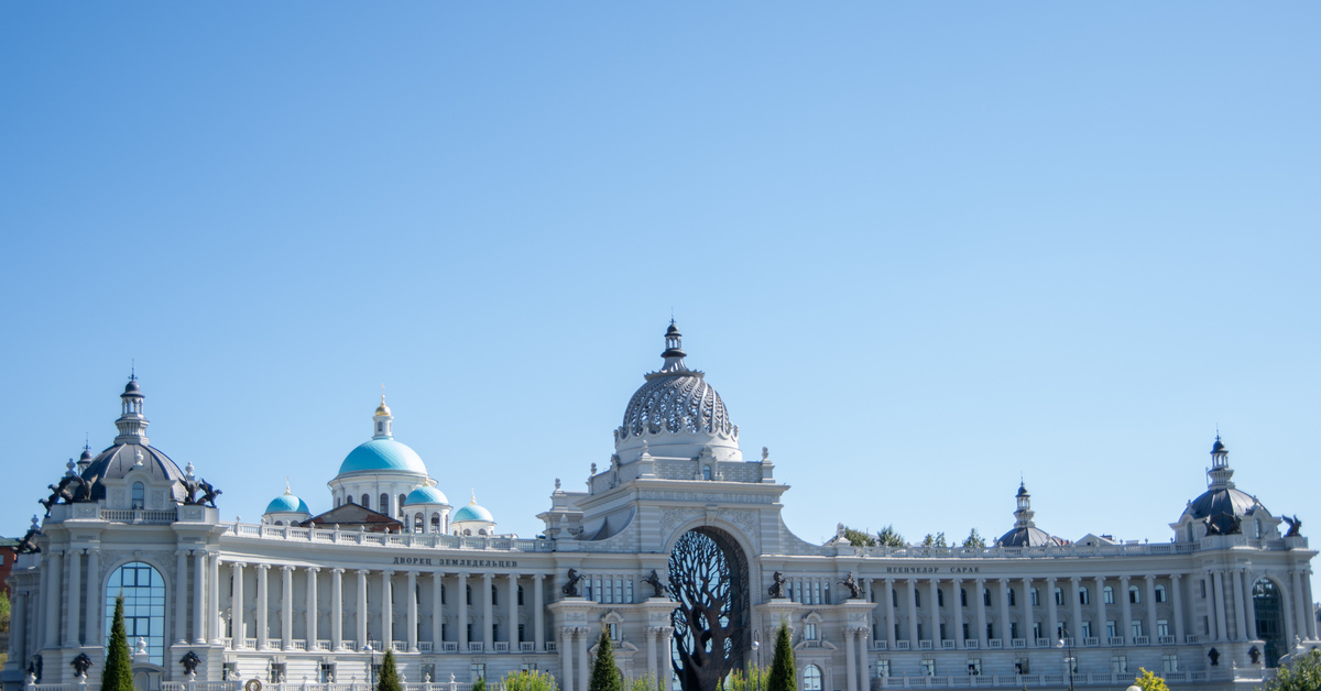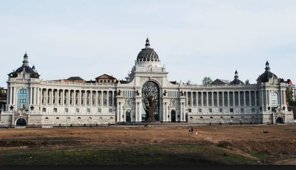 Монументальный дворец земледельцев по праву принадлежит к числу самых эффектных и запоминающихся современных архитектурных достопримечательностей Казани. В этом роскошном здании, напоминающем австрийский дворец Хофбург, располагается Министерство сельского хозяйства. О процветании сельского хозяйства в Татарстане говорит не только пышный фасад дворца земледельцев, но и символ плодородия и достатка – бронзовое дерево, украшающее его центральную арку. Прекрасный панорамный вид на дворец земледельцев открывается со смотровой площадки Казанского кремля, а в вечернее время, благодаря яркой подсветке, он выглядит просто великолепно.
