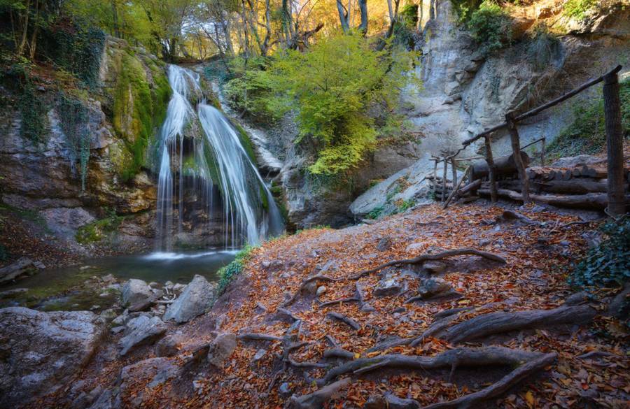 Нагромождения эти и создали на реке множество больших и маленьких падающих потоков. В отличие от множества крымских речек Улу-Узень никогда не пересыхает, даже в самую жаркую пору. Следовательно, любоваться водопадами тут можно круглогодично.