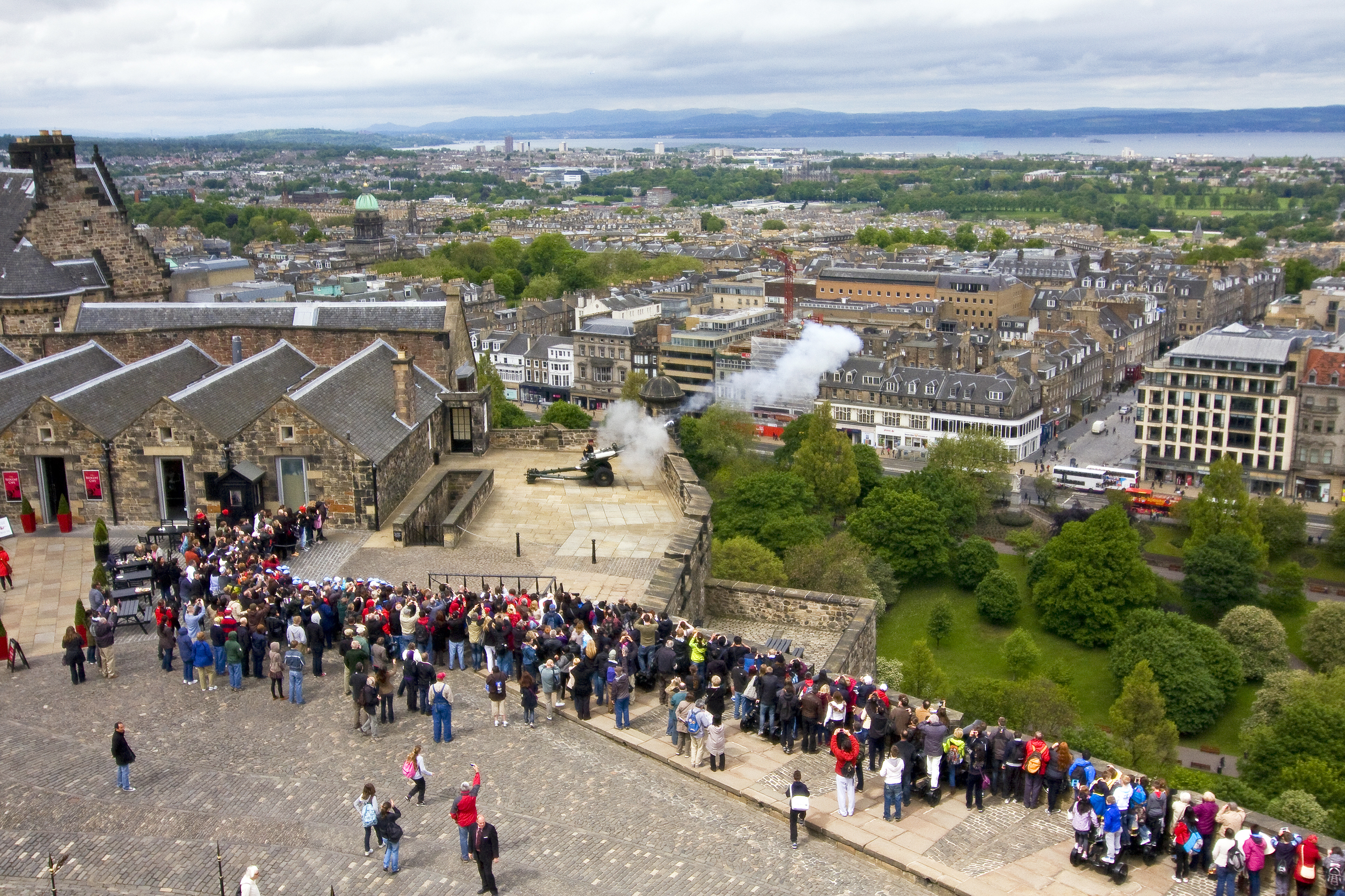 С зубчатой стены замка круглый год в 13.00 (кроме воскресенья) стреляет пушка. Спускаясь по эспланаде с замковой горы, вы пройдёте мимо Исторического центра шотландского виски (Scotch Whisky Heritage Centre; ежедневно 10.00-18.00, летом более продолжительные часы работы), где в развлекательной форме рассказывается об этом национальном напитке шотландцев.