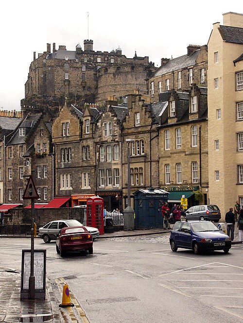 Центральная магистраль Старого города – мощёная Королевская миля (Royal Mile) – включает Castlehill, Lawnmarket, High street, Canongate и тянется от замка до Холирудского дворца (Holyroodhouse). Возможно, замок возник на месте укреплённого поселения железного века, на скале, которая обеспечивала ему трёхстороннюю защиту.