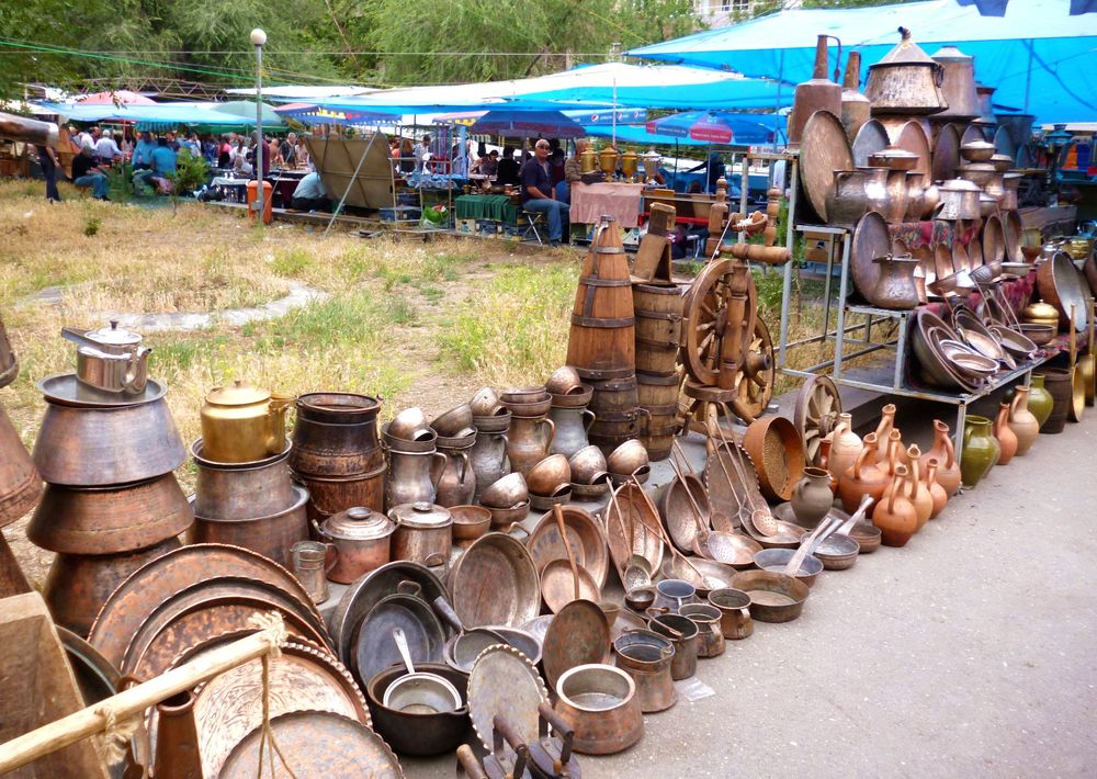 Ереван Вернисаж – это большой рынок под открытым небом, где ремесленники и ремесленники собираются вместе, чтобы сформировать один из крупнейших сувенирных рынков I когда-либо видел. Здесь можно найти практически любые предметы местного ремесла, от керамики до картин и музыкальных инструментов.