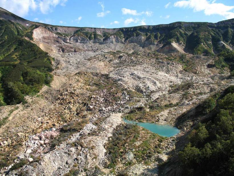 Вершины высоких вулканов, как и вершины других высоких гор, подвергаются энергичным процессам физического выветривания. Здесь, как и в других горах, под влиянием резких колебаний температур образуются мощные накопления скал, камней и глыб. Так же, как и в других горах, по склонам спускаются «каменные потоки». Разница заключается лишь в том, что «каменные потоки» спускаются не только по наружным склонам конуса, но и по внутренним склонам кратера.