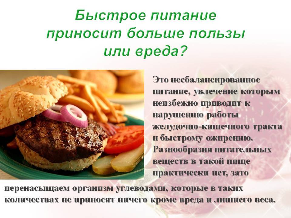 Польза и вред фаст фуда, еда быстрого приготовления