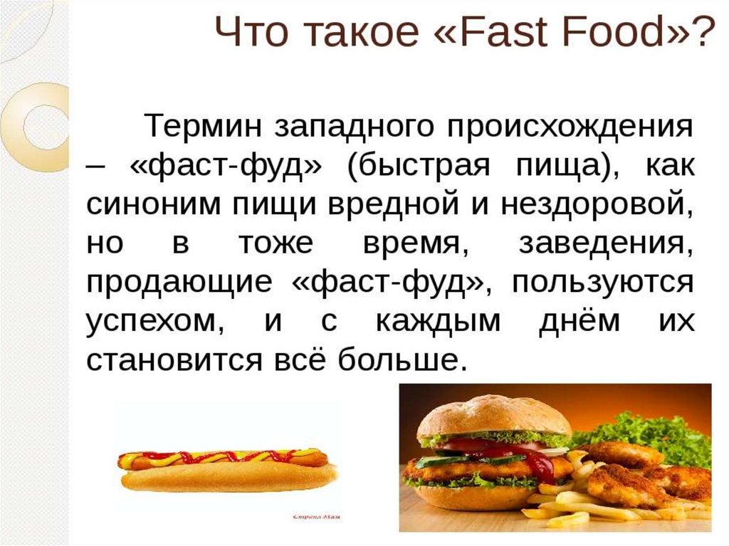 1.Узнать, что такое фаст-фуд, польза или вред, наносимый организму человека.