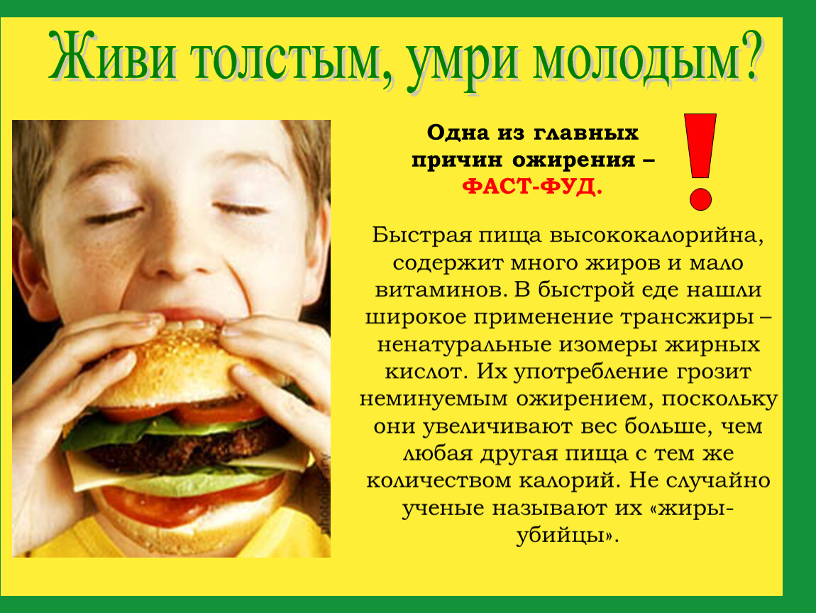 И первый ответ на вопрос о вреде Фаст-фуда — это ожирение!!