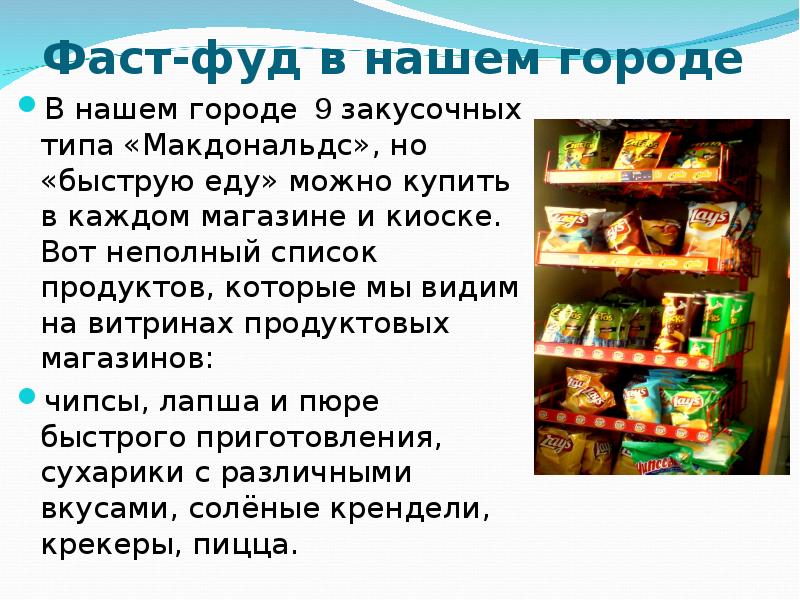 Но ведь кафе быстрого питания — это так популярно, вкусно… и быстро…