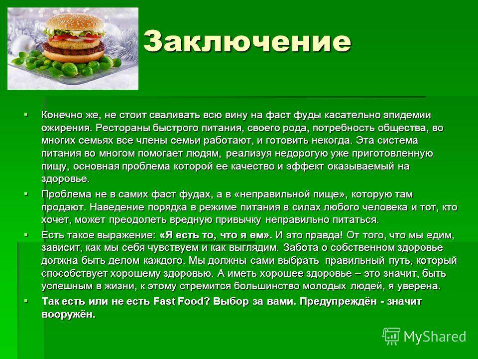 Ни один фаст-фуд не способен заменить здоровую пищу, и не стоит он того, чтобы на кон выставлять собственное здоровье!