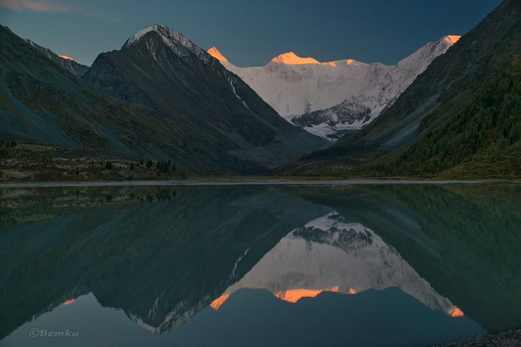 Отражение Белухи в озере Равновесия. Большой Алтай (6137)