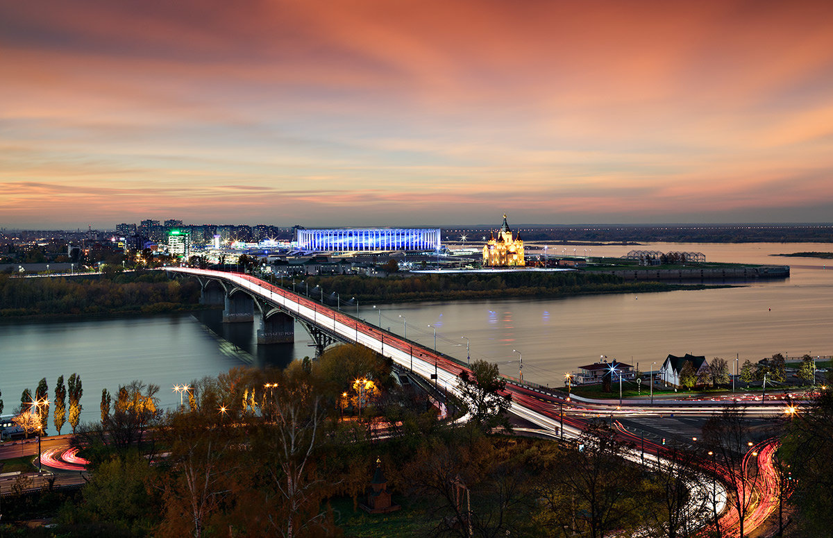 36. Нижегородский метромост. Совмещённый мостовой переход через Оку в черте Нижнего Новгорода между Молитовским и Канавинским мостами в створе улиц Вокзальной и Черниговской.