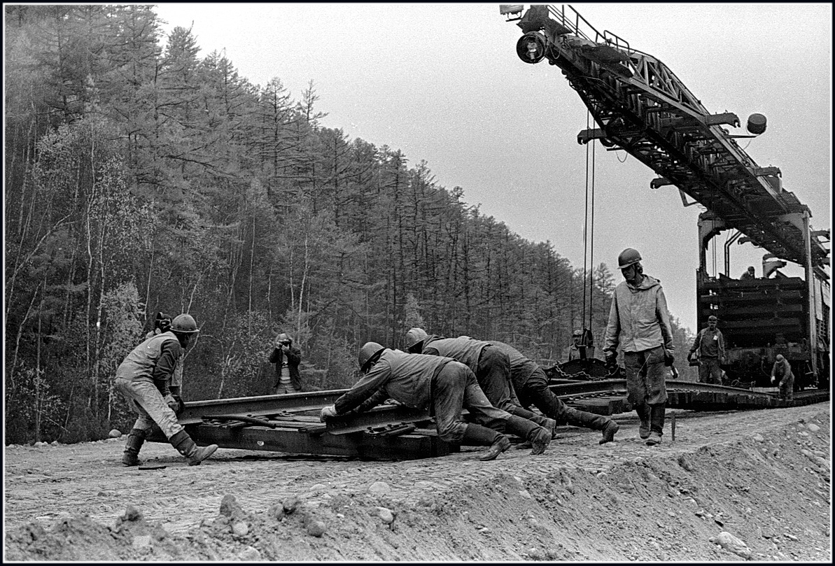 Монтаж железнодорожных путей БАМа. 1977 год © Григорий Калачьян / ТАССПотом на десять лет на БАМе опять наступило затишье, пока ухудшение отношений с Китаем снова не сделало актуальными стратегические мотивы прокладки северной магистрали на восток.