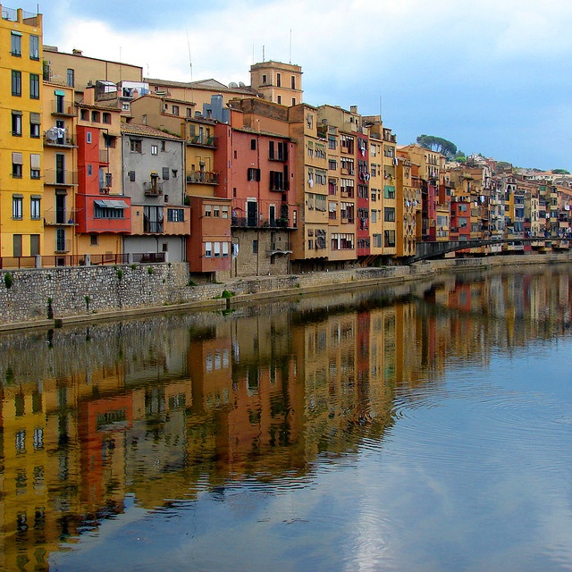 Визитная карточка Жироны — цветные фасады домов набережной Оньяр, плотно выстроившихся на изгибе русла реки. В 1982 году группа каталонских художников предложила концепцию визуального изменения облика набережной, застроенной потемневшими старинными зданиями. Идея была проста — окрасить стены в тёплые оттенки охры. С той поры этот живописный квартал именуют Cases del Riu (Дома Реки).
