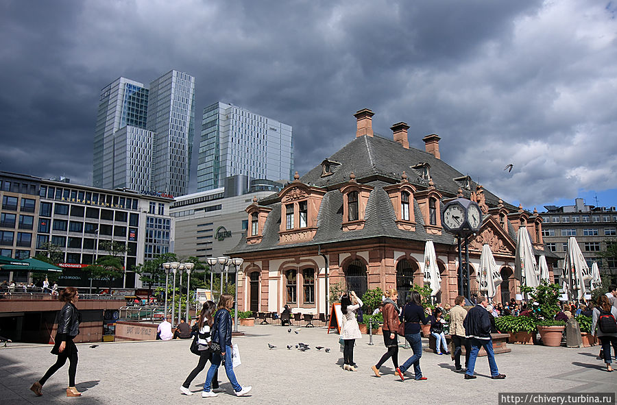 На некоторые из небоскребов можно подняться – проще всего это сделать на Main Tower (Neue Mainzer Straße 52-58). Ценник и часы работы ищи на сайте. А на самом высоком небоскребе Франкфурта (и Германии) Commerzbank tower (Kaiserplatz 1) можно попасть на занятную экскурсию: тебе расскажут, как это здание вписывали в историческую застройку и как применяли «зеленые» технологии, как тяжело было повторить логотип банка в форме здания, покажут мужской туалет на 49 этаже с окнами в пол – так сделали специально, чтобы сотрудники Коммерцбанка могли в буквальном смысле слова мочиться на конкурентов из Дойчебанка, чье здание неподалеку.