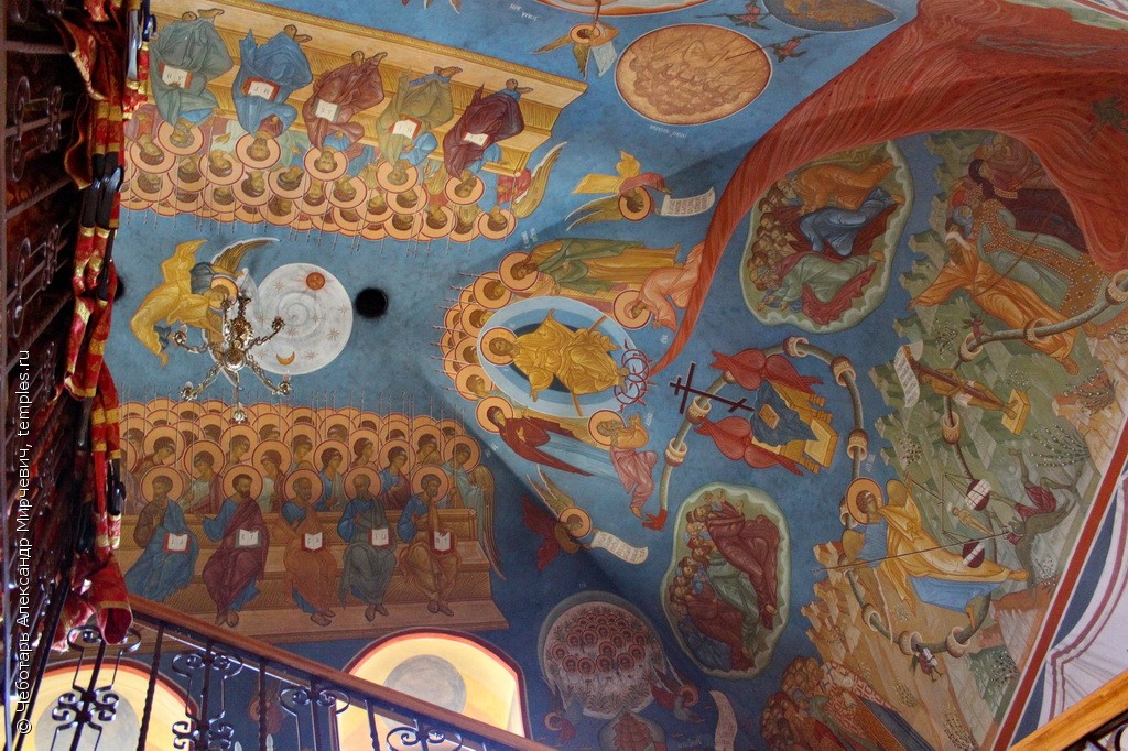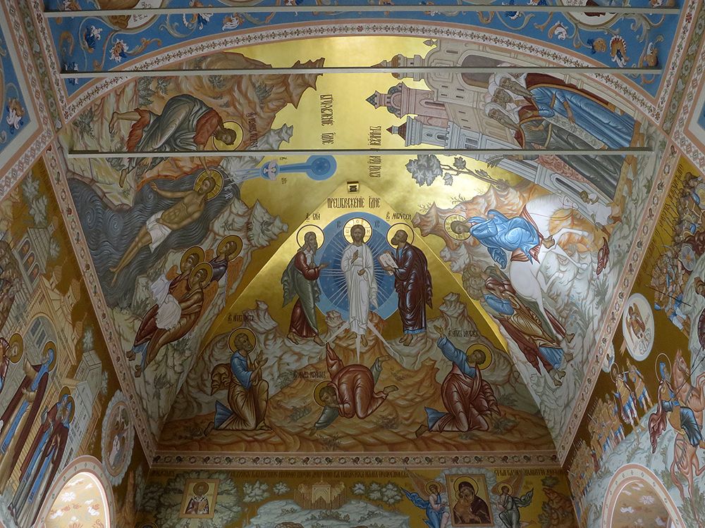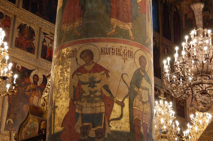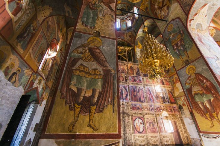 Стены покрыты драгоценными фресками, средневековый иконостас простирается от пола до потолка, а стены увешаны гробницами патриархов и митрополитов