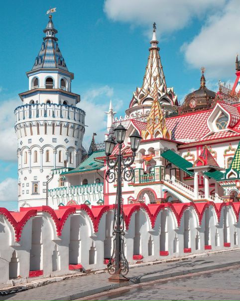 Территория Измайловского кремля стала воплощением невероятных архитектурных фантазий, тем не менее, схема комплекса не была придумана из небытия, она создавалась после основательного изучения исторических русских территорий. Кремль стал гармоничным смешением царских белокаменных палат и традиционных боярских деревянных теремов, тут можно встретить все самые известные элементы зодчества, связанные с изысканным псевдорусским стилем: разноцветные крыши, нарядные кокошники, витиеватые изразцы, зубцы в форме хвоста ласточки, российские двуглавые орлы, мифические грифоны.