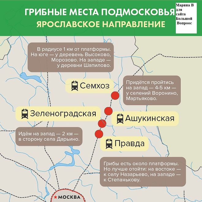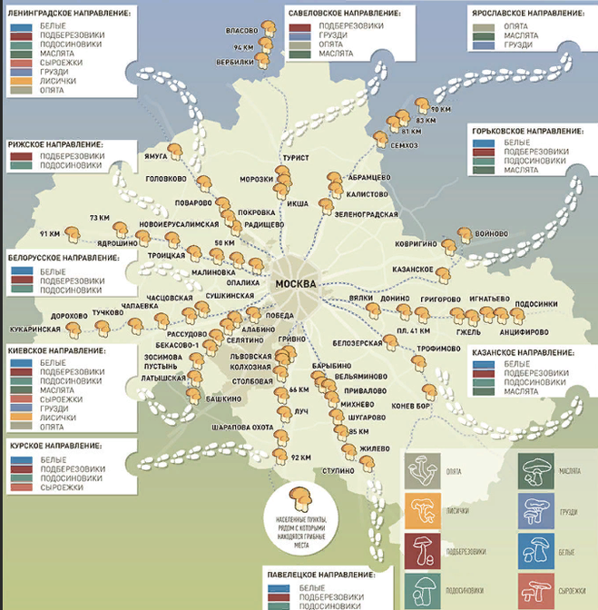Грибная охота популярна по всей России. Некоторые густые леса, такие как сибирские, считаются настолько хорошими для грибов, что люди едут туда собирать грибы, как люди едут на северо-запад Америки ловить рыбу нахлыстом. Но Россия — огромная страна, поэтому мы остановились на районах вокруг Москвы и Санкт-Петербурга.