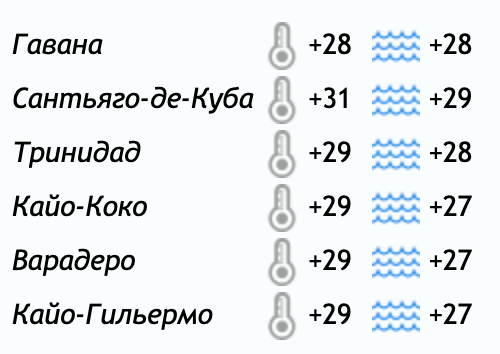 | Виза | Не нужна, если находиться на территории Кубы не больше 30 дней.![]() |