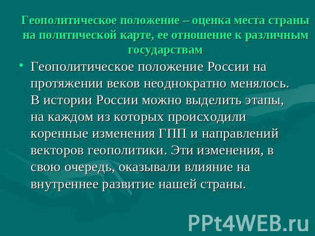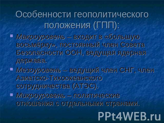 - выгодное географическое и геополитическое положение в системе международных связей;