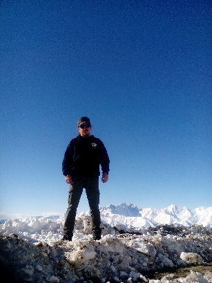 Мы с Георгием и Лидией во время остановки на обед. Фотографируемся и ждем пока приготовят шашлык и хинкали.
