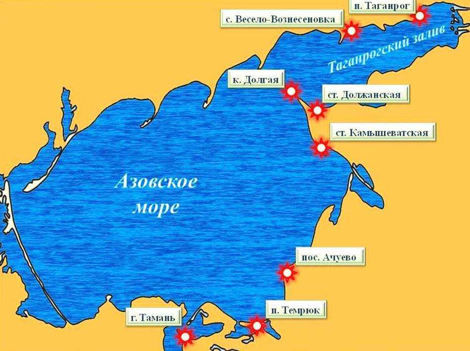 Азовское море имеет самое мелководное море в мире, что подтверждает одну из исторических версий его названия малое море. Вышеизложенное исключает возможность применения подводных лодок, но повышает эффективность применения морского минного оружия. Следующий. Азовское море — самое пресноводное море в мире. Это связано с его изолированностью, мелководностью и относительно высокими приливами таких рек, как Дон, Кубань, Ея и Кальмиус.
