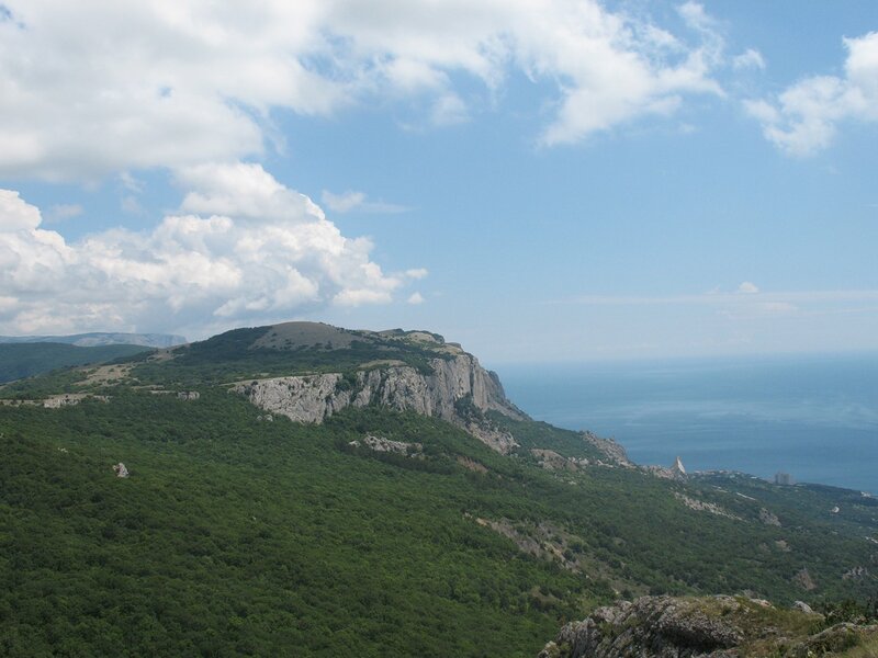 Прямо под Ильясом находится скалистый гребень Деликли-Бурун, а на север открывается панорама Байдарской яйлы – самой западной из крымских яйл.