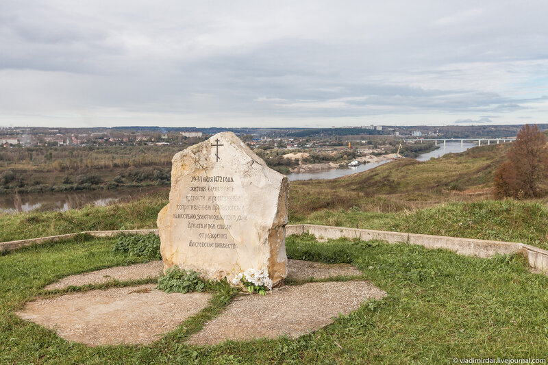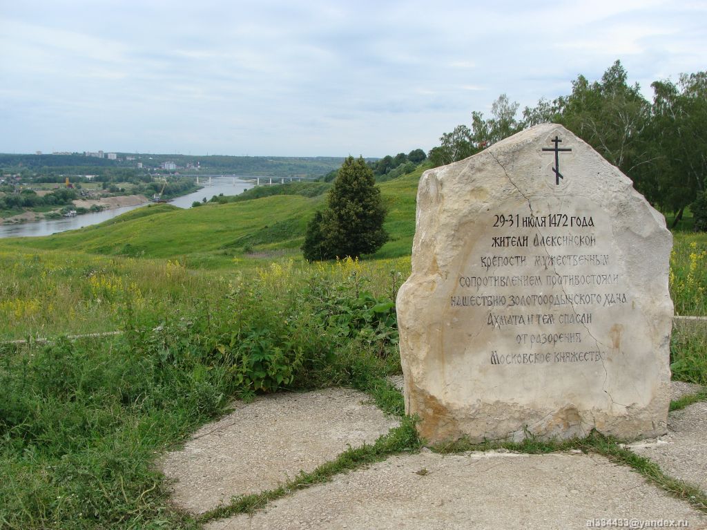 На берегу Оки-скульптурная фигура святителя Киевского (исторически именно так) чудотворца Московского Алексия-видного государственного деятеля XIV века.