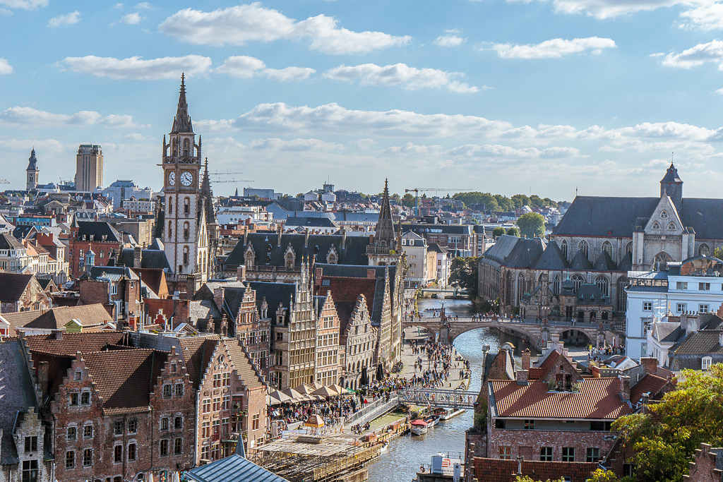 Вид на город сверхуГент находится примерно на полпути между Брюсселем и Брюгге. Некоторые люди предпочитают посетить и Гент, и Брюгге за один день, но мы рекомендуем этот маршрут только в крайнем случае, потому что оба города (и Гент в частности) стоят как минимум одного дня.