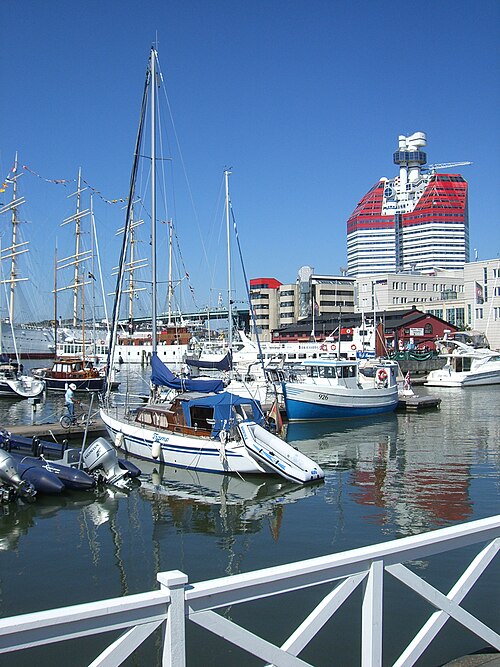 С променада у оперного театра открывается прекрасный вид на красно-белый небоскреб Уткикен (Utkiken). На высоте 86 м есть смотровая площадка, откуда весь город как на ладони. Перед небоскребом на якоре стоит гостиница на воде — четырехмачтовый барк «Викинг».