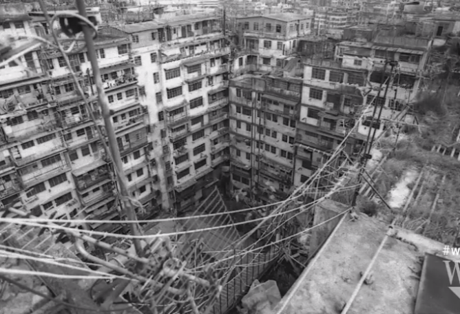 [18][19][50] Крыши в городе были забиты телевизионными антеннами, веревки для белья, цистерны с водой и мусор, и их можно было пересечь с помощью ряда лестниц.[51][52]
