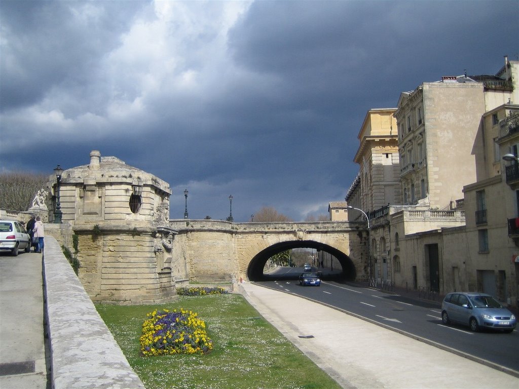 … пока мы не добрались до Порт-дю-Пейру — собственной Триумфальной арки Монпелье — расположенной в непосредственной близости от столь же впечатляющего здания суда.