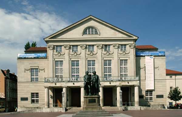 - Национальный театр на Театральной площади директорами его в разное время были Шиллер, Гете и Вагнер. Перед театром стоит памятник двоим друзьям-литераторам — скульптуры Гете и Шиллера стали символами города и изображаются на всех сувенирах.