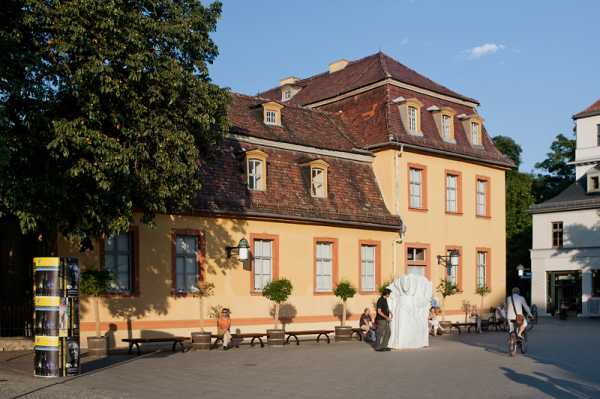 Приближаясь к исторической старой гостинице «Белый лебедь» вы увидите дом Гете (Goethes Wohnhaus), простое здание в стиле барокко, построенное в 1709 году. Иоганн Вольфганг фон Гете, один из самых известных писателей Германии, жил в нем с 1782 года и до своей смерти в 1832 году. Этот хорошо сохранившийся дом содержит его художественные и научные коллекции, а также кабинет Гете для письма и библиотеку, содержащую около 5400 томов. На верхнем этаже находится Национальный музей Гете с широким спектром материалов о его жизни и работе. Также интересен сад-дом Гете в Ильм-парке, причудливый коттедж, который он часто использовал в качестве загородного дома, здесь во время экскурсии можно рассмотреть оригинальную мебель и документы связанные с писателем.
