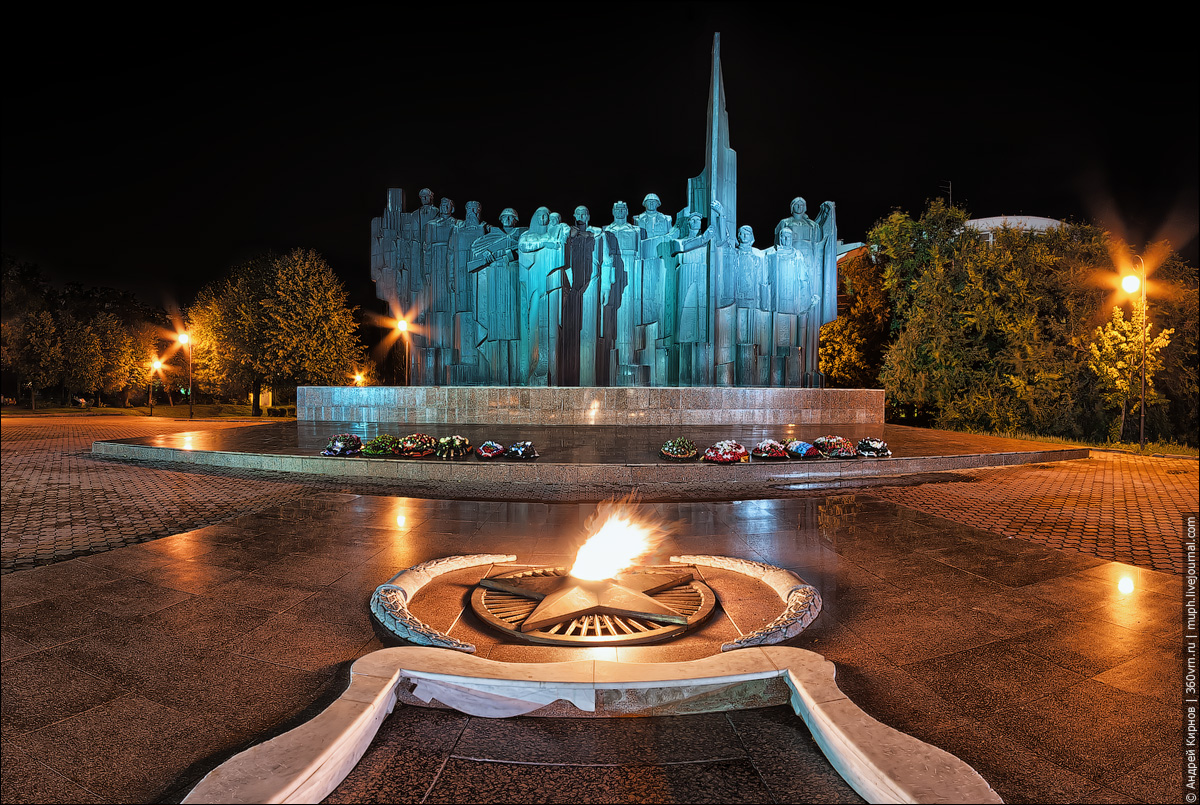 Многие посетители ошибочно полагают, что памятник Славы представляет собой большую красную пирамиду, расположенную почти у въезда в город, но это не так.Настоящий Монумент Славы находится примерно в 500 метрах от пирамиды. Авторы памятника — А.Г. Бузов и Ф.К. Сушков. Это бронзовая композиция, изображающая профиль умирающего солдата. И прямо перед ним грустная женщина кормит ребенка грудью. Возможно, это мысли или образы солдата перед смертью.