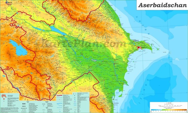 Кавказские горы образуют граница между Россией на севере Грузией на юге и Азербайджаном на юго-востоке . Малый Кавказ простирается на юго-восток от Грузии до Армении.