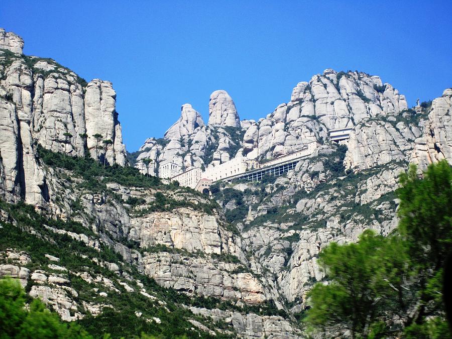 Во-первых, Монтсеррат – это довольно впечатляющий горный массив, круто поднимающийся к северо-западу от Барселоны и достигающий 1236 м в высоту. На фургоне мы приехали из городка Вик и уже издалека увидели силуэт массива. Можно сказать, что он хорошо носит свое название, так как Монтсеррат можно перевести как «Гора в зубах пилы» .