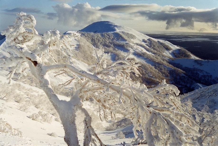 Вулкан Пик Фусса, остров Парамушир, Курильские острова Зимой на Курильских островах свирепствуют штормовые ветры и метели. В феврале самые низкие температуры опускаются до -6°C/-8°C (10-18F), но при сильном ветре даже такие низкие температуры кажутся довольно суровыми. Говоря о самых противных ветрах, отправляйтесь в Парамушир, чтобы испытать самые сильные зарегистрированные порывы ветра, достигающие скорости 230 км/час. Зимой бывают оттепели до +8°C/+12°C (+46/54F). Снежный покров на севере Курильских островов появляется уже в ноябре, на юге – только в начале декабря. Снег на территории Курильских островов ложится неравномерно: в выветренных районах снега может не быть совсем, а в долинах толщина снежного покрова может достигать нескольких метров. Весна холодная, со значительными осадками. Только осень, с наибольшим количеством солнечных дней в году, дает передышку от непрекращающихся дождей. На Курилах так же красиво, как и на Сахалине.