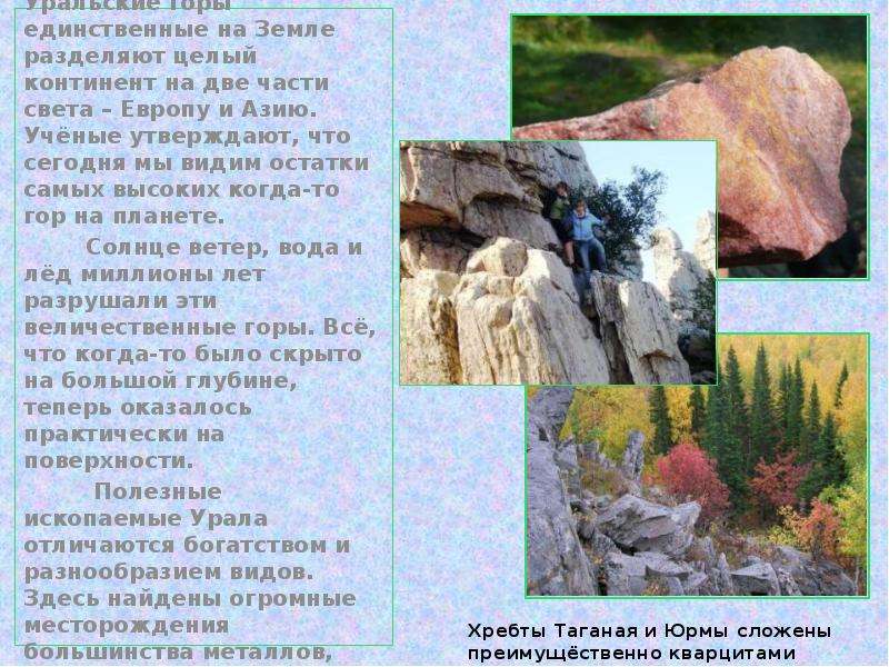 Уральский край настоящая кладовая различных ископаемых, уникальный природный памятник нашей страны.