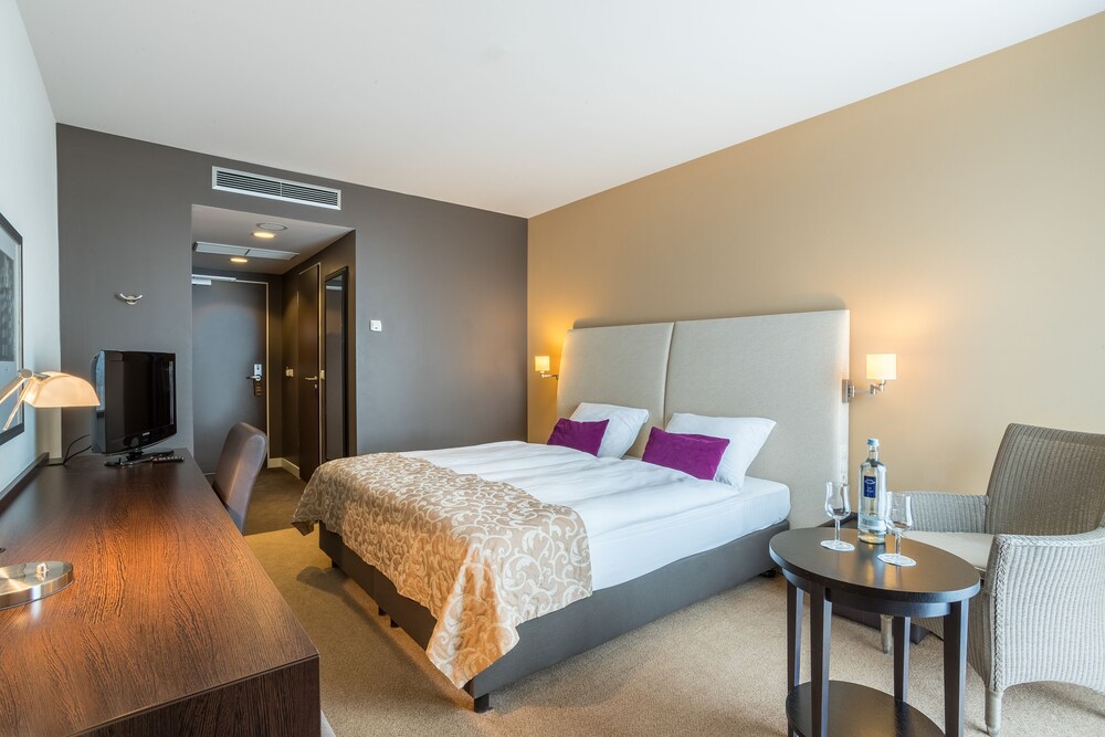 Номера с современной мебелью и кондиционером: 1 двуспальная кровать или две односпальные, душ/туалет, рабочее место, современный ТВ и бесплатный WIFI. В некоторых номерах есть кровать для третьего человека.