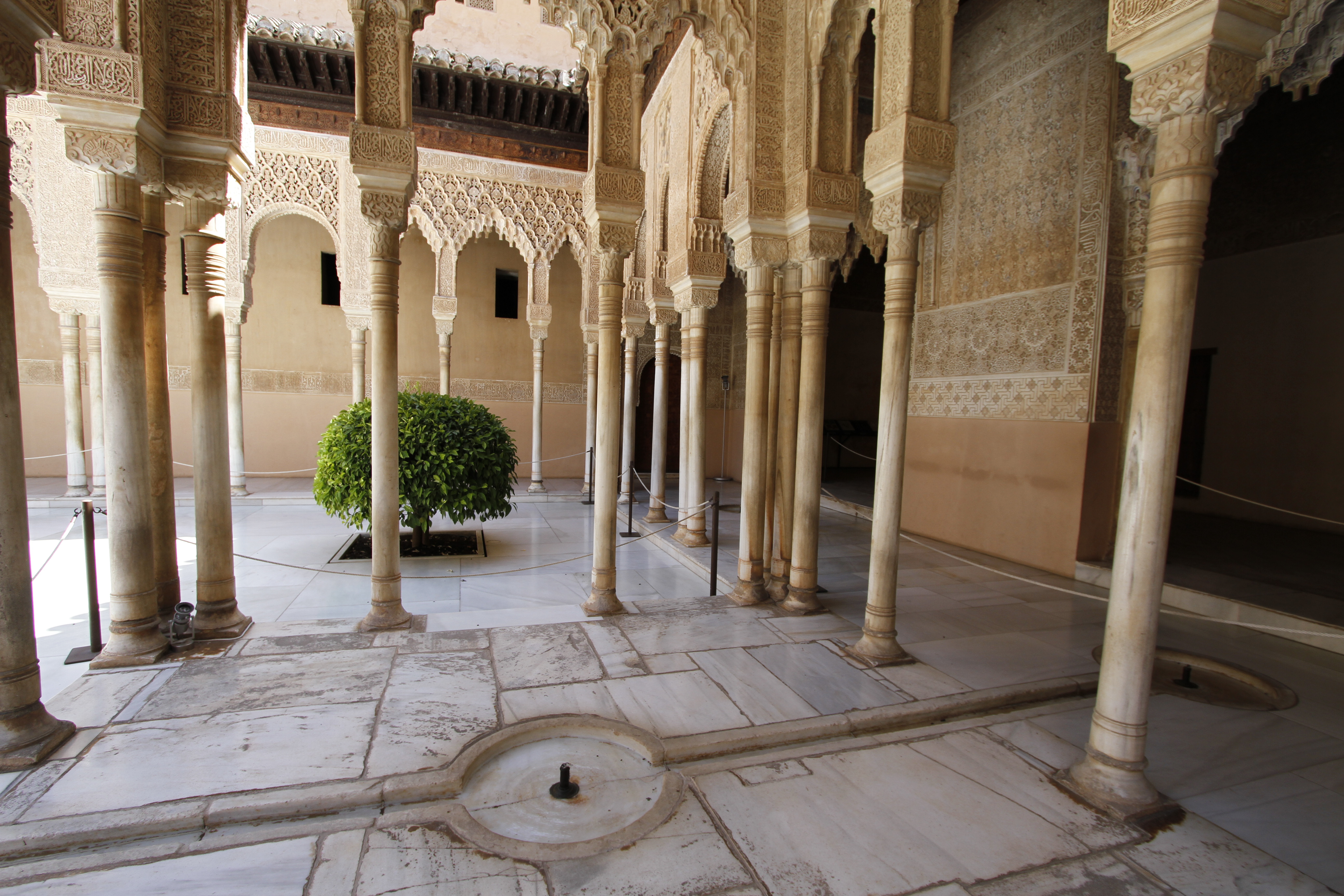 Двор львов — главный двор дворцов и, вероятно, самая фотографируемая часть Альгамбры. Это была частная часть дворцов.Он назван в честь фонтана из 12 львов, который вы видите прямо посередине. Центральный внутренний дворик окружен великолепными колоннами.