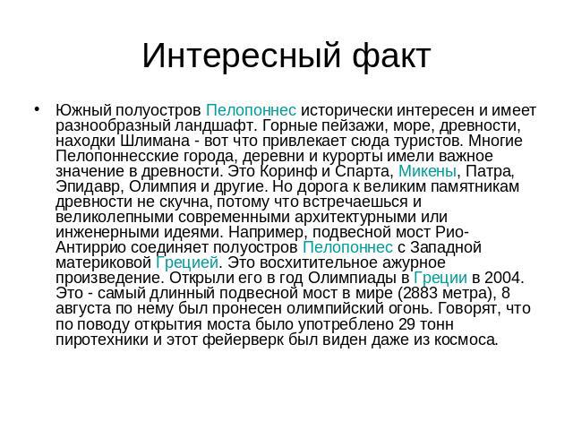 - В Греции нет точек, удаленных от воды более чем на 85 миль или 137 километров.