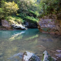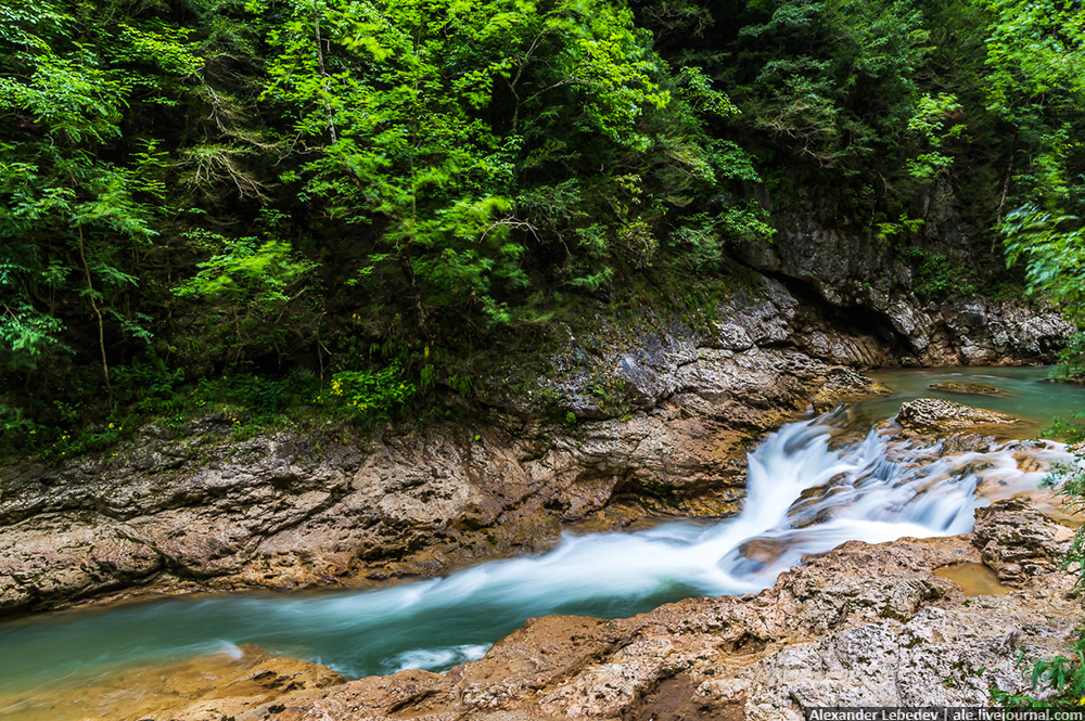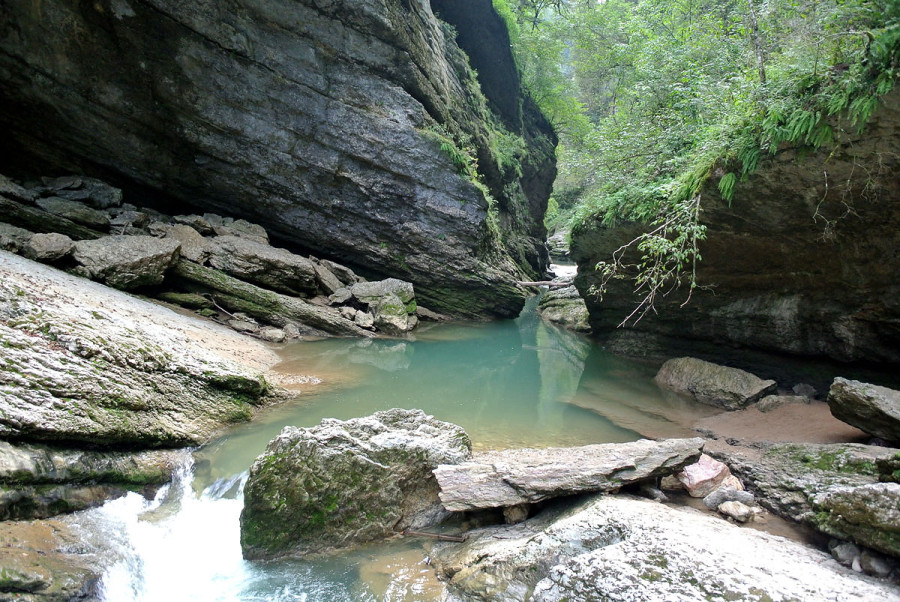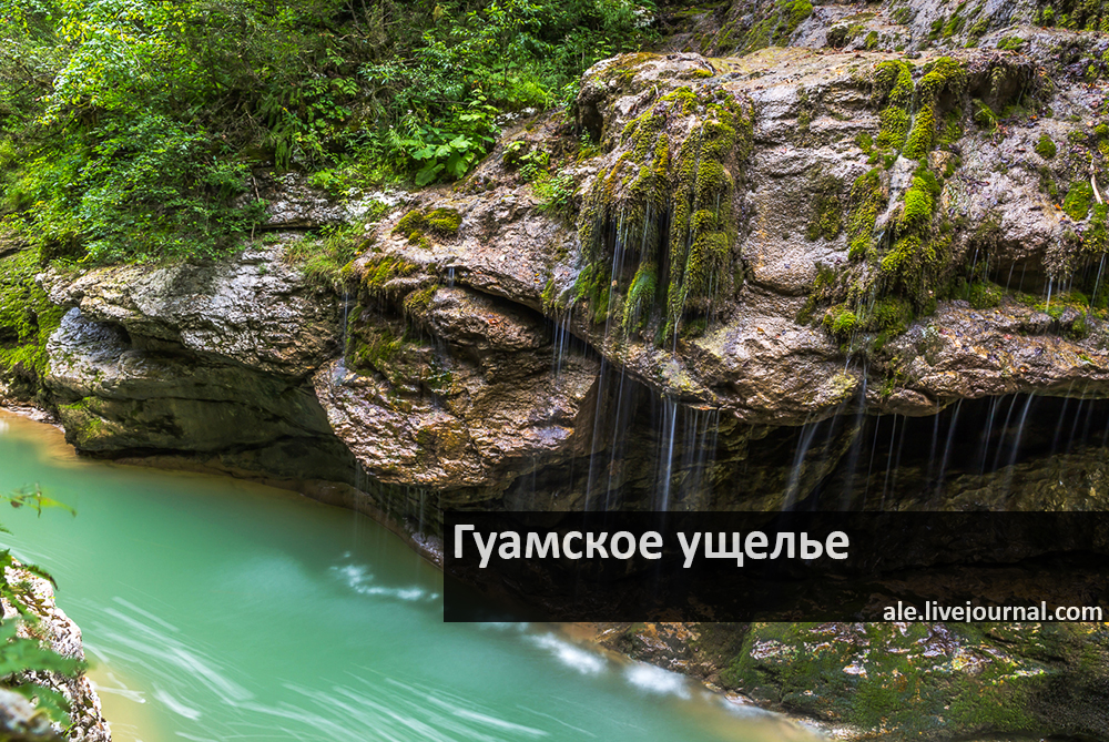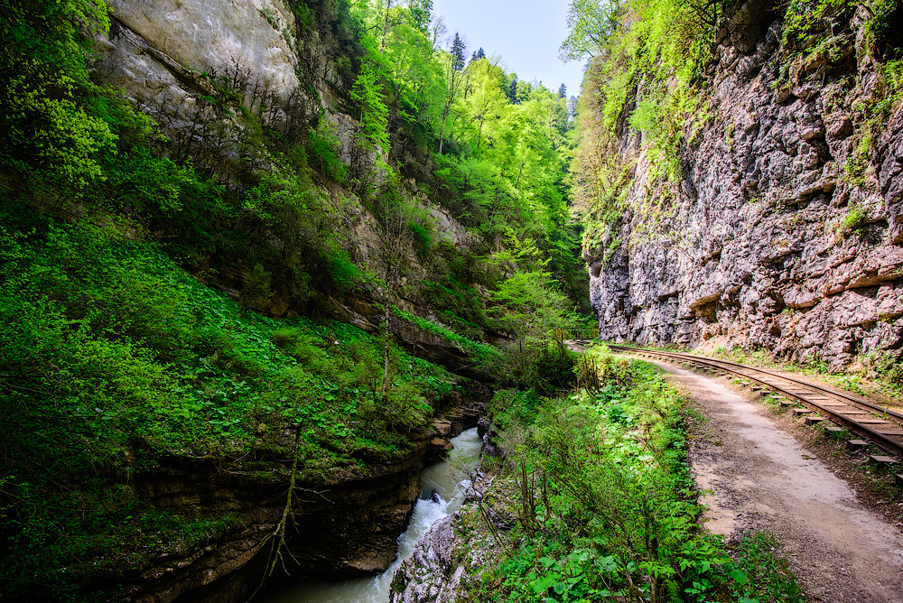 Другое живописное ущелье – Гуамское – расположено между Мезмаем и поселком Гуамка. По нему проложена узкоколейная железная дорога, но в наши дни она не работает. Гуамское ущелье – настоящий экологический и ботанический музей под открытым небом.