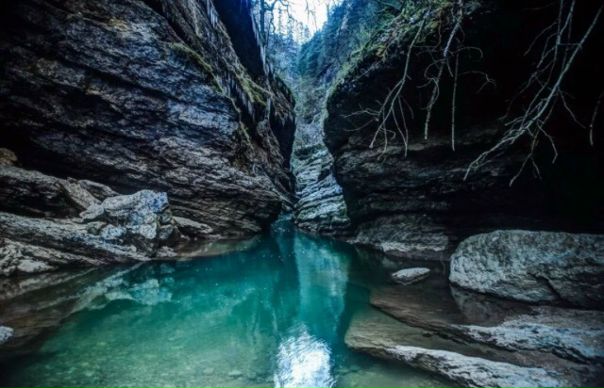 Если пройти еще выше, то можно увидеть пещеру Исиченко. Огромная карстовая полость протянулась более чем на 1600 м, но ее нижние ходы отделены сифоном, который является серьезным препятствием для исследователей.