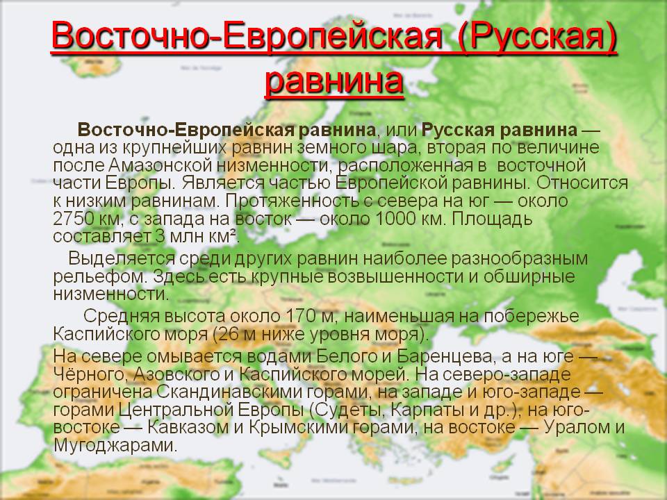 Типичная формы рельефа | Восточно-Европейская равнина |