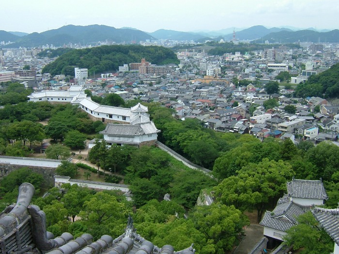 Издали, особенно в пасмурную погоду плавные очертания башен с японскими гнутыми крышами действительно напоминают прекрасную белоснежную птицу.Всего замковый ансамбль насчитывает 83 сооружения, практически все они выполнены из дерева. Замок Химэдзи находится в 1,5 часа езды от Осаки — промышленного центра Японии. У подножия замка раскинулся одноимённый город, охранявший в былые времена пути к западу от Осаки.