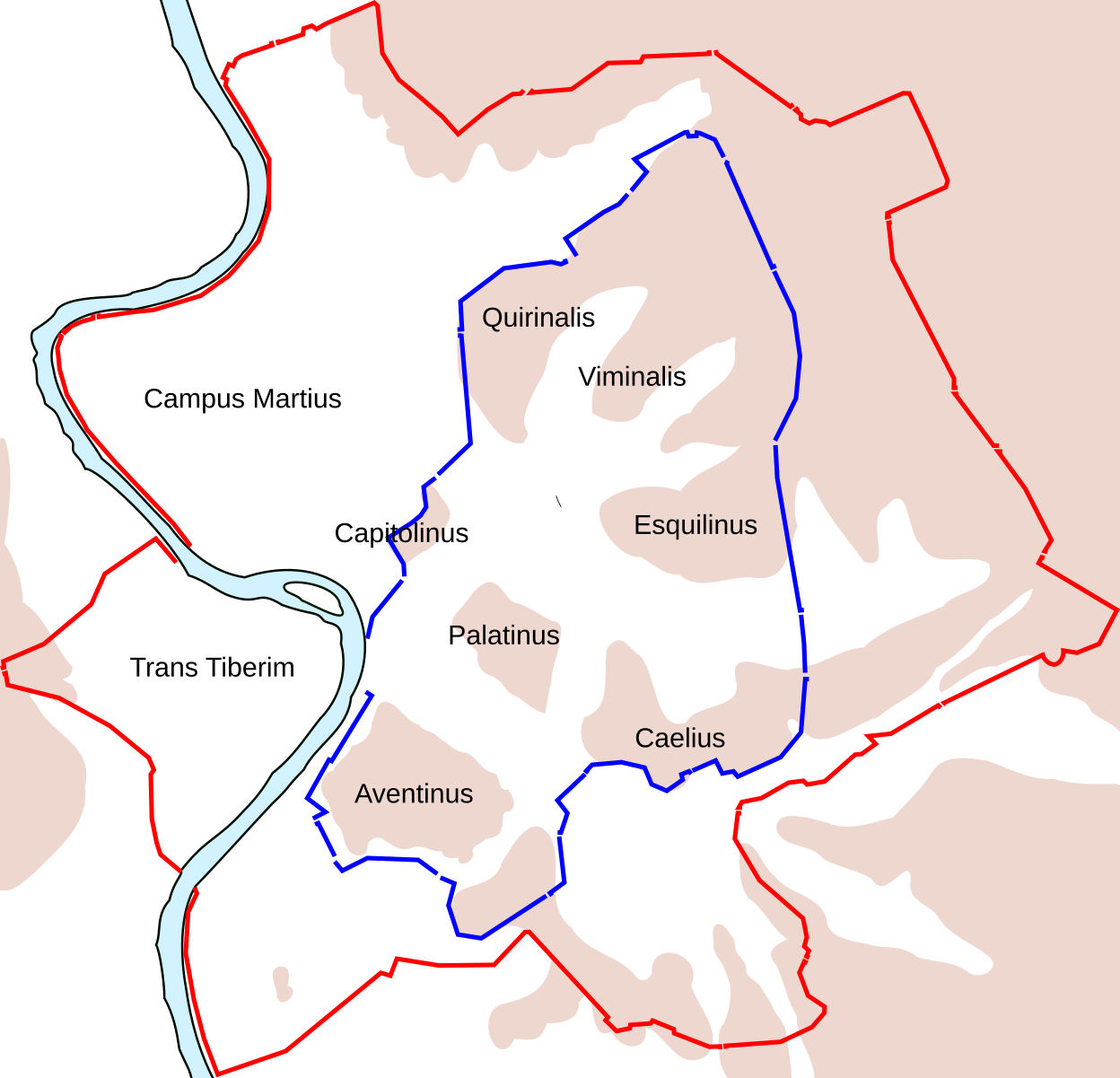Согласно преданию, Рим был построен на семи холмах. Точнее, Ромул, основатель и первый царь Рима, основал город на Палатинском холме 21 апреля 753 г. до н. Э. Однако первоначально Рим не назывался Римом; семь холмов были заняты небольшими поселениями, независимыми друг от друга; только после того, как они начали взаимодействовать и осушать болотистые долины между холмами, заменяя их fora (общественные места на открытом воздухе), возник город Рим.В начале 4 века до нашей эры Сервианские стены были построены для защиты семи холмов.