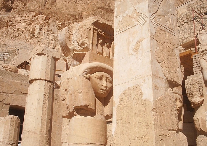 Что интересно, Тутмос III — племянник и преемник Хатшепсут — имел официальную политику стирания любых следов ее имени. Он отправился в Дейр-эль-Бахри и вырезал ее имя во всех местах, которые смог найти.